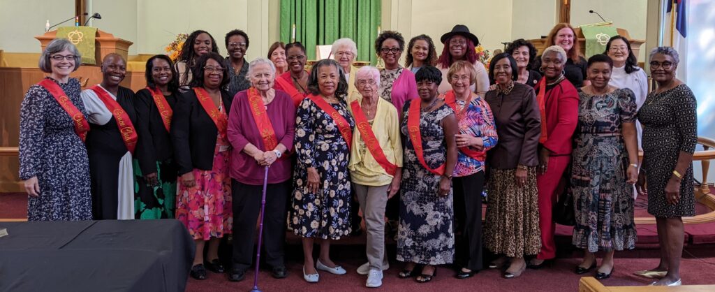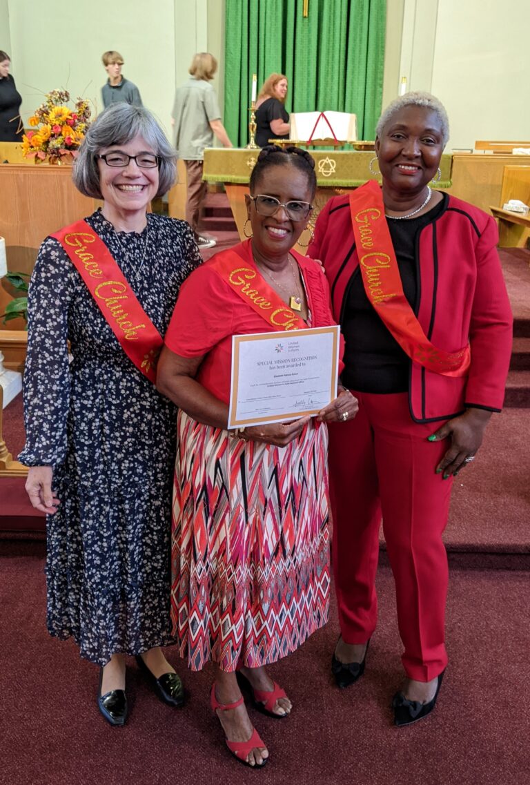 UNITED WOMEN IN FAITH. We had a blessed United Women in Faith Sunday on September 28. We presented the United Women in Faith Missions Award to Pat Eshun. Attached is a group photo and a photo of Pat with me and Andrea. Iris, Debbielee, and Joan missed the photo because they were helping in the kitchen. Several others missed the photo who were there as well, but you can see we had a good turnout. Thank you! If you missed today, please plan to join us next year! –Katherine Perkins